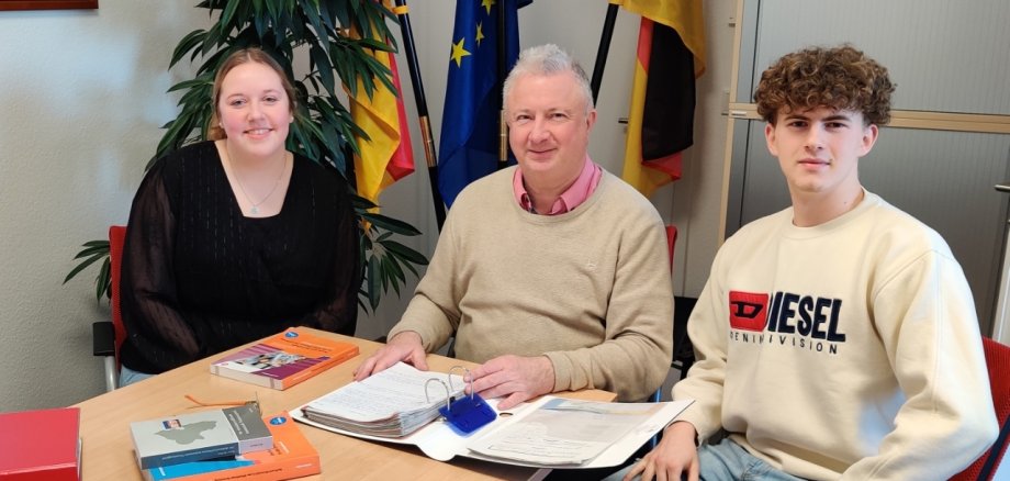 Bürgermeister Gerd Rocker erkundigt sich regelmäßig nach dem Ausbildungsstand und erörtert mit den beiden Auszubildenden die verschiedenen Ausbildungsbereiche und -fächer. Sowohl Frau Spuhler, als auch Herr Magiera, haben versichert, dass dieser Ausbildungsberuf für sie die richtige Wahl war und sie mit Freude und Engagement die Ausbildung absolvieren.