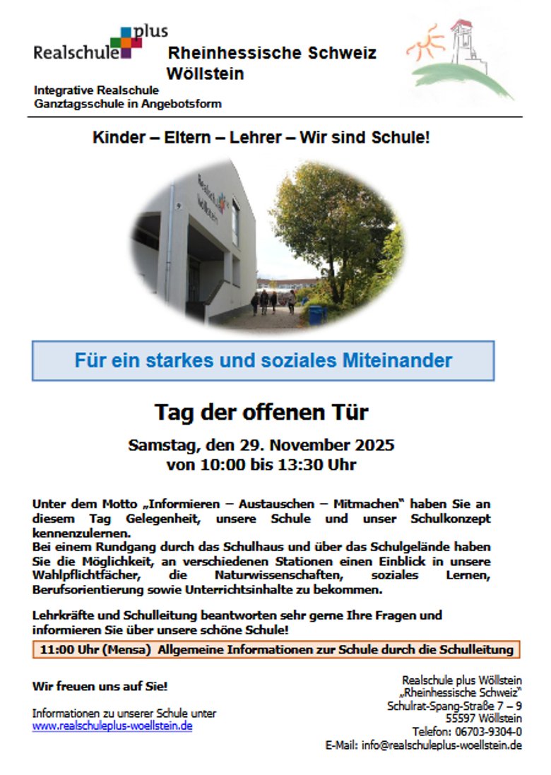 Tag der offenen Tür in der Realschule Plus in Wöllstein am 29.11.